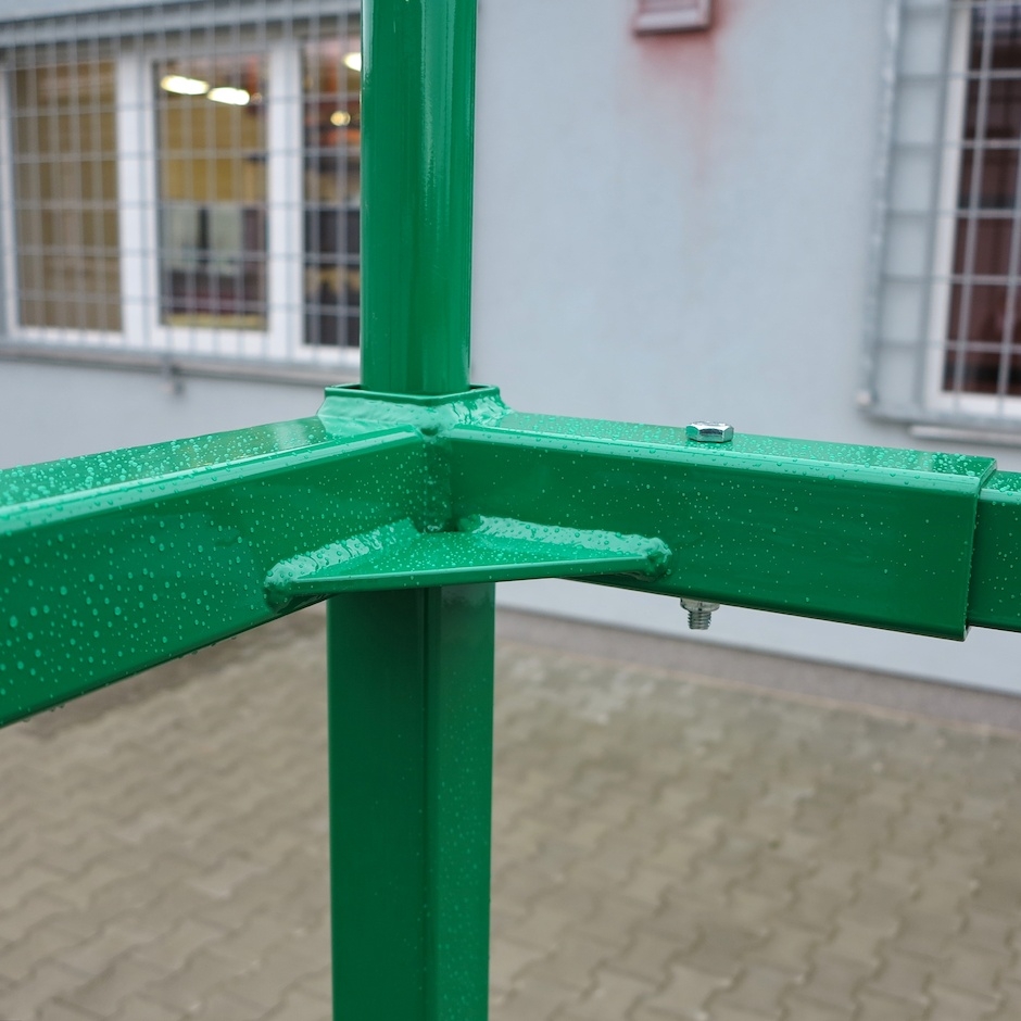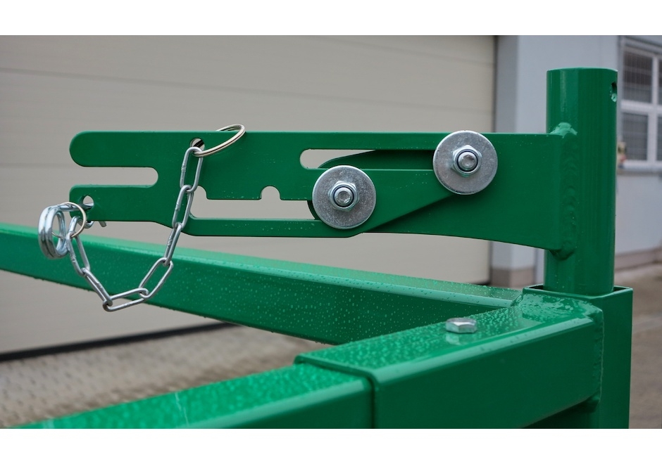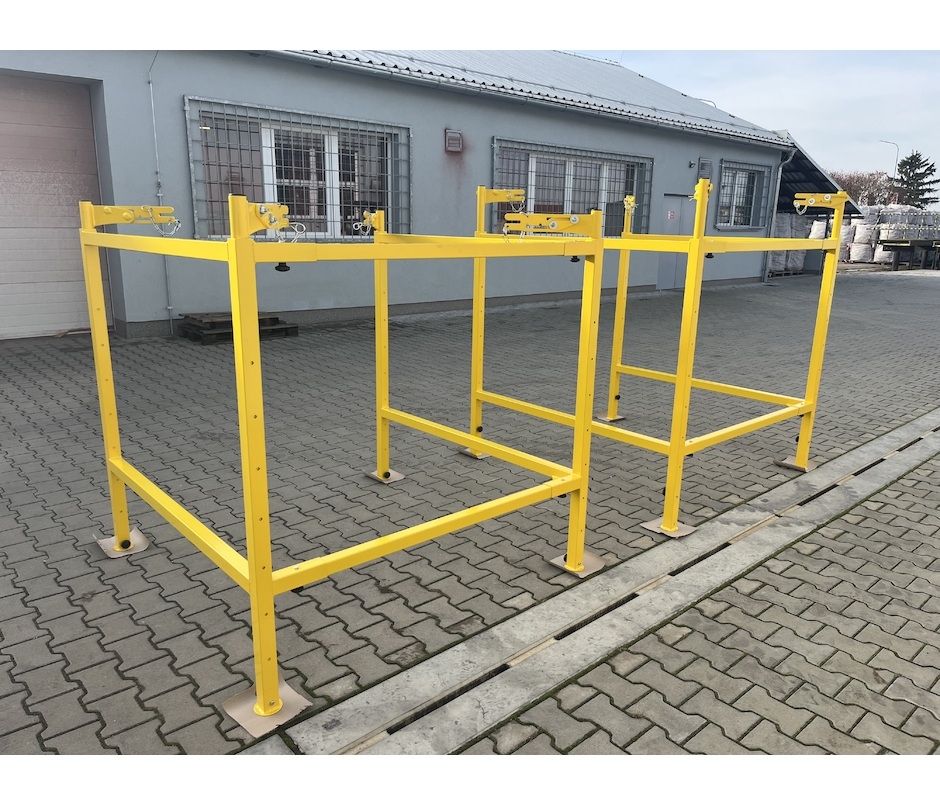 Tento stojan má zesílenou konstrukci (z jeklu 60x60x4 mm) a má nastavitelnou výšku háčků od 145 do 250 cm, proto je vhodný pro různé větší velikosti Big-Bagů. Délka úchytů je také nastavitelná, díky tomu lze tento stojan použít pro Big-Bagy s půdorysem od 90x90 do 110x110 cm.