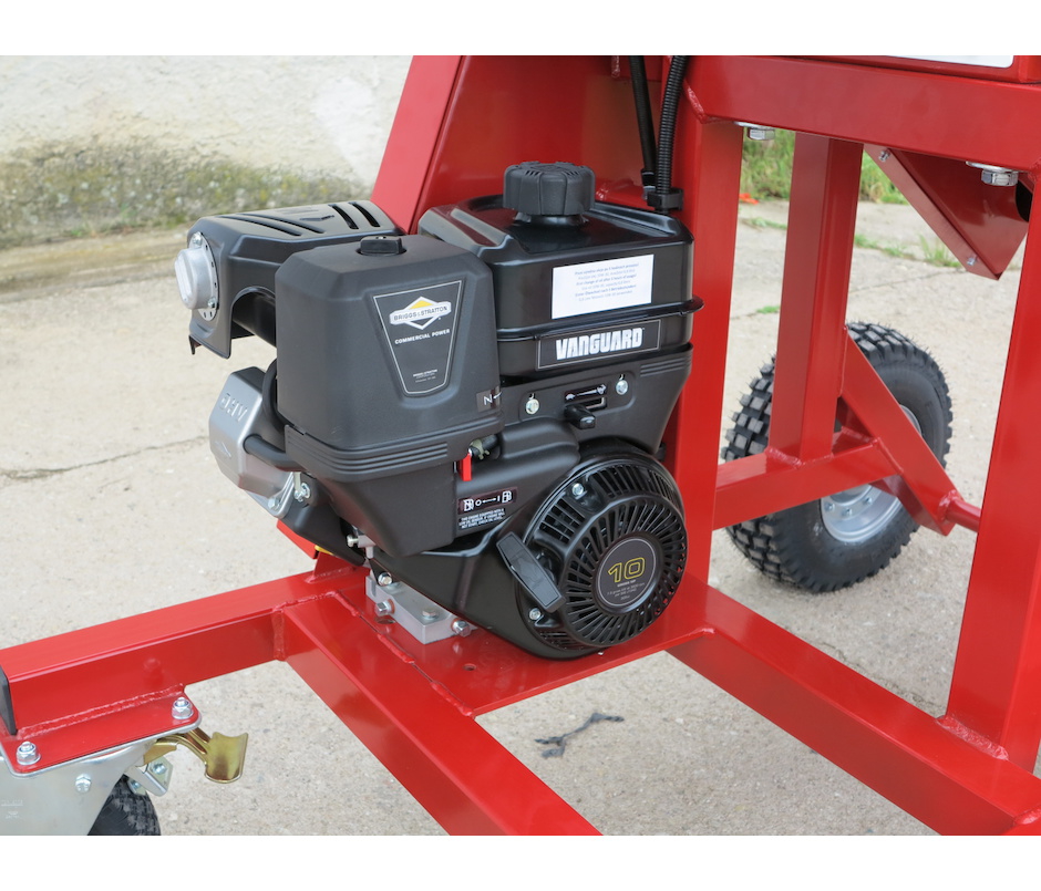 Štěpkovač je poháněn čtyřtaktním benzinovým motorem Briggs & Stratton VANGUARD o výkonu 10 koní (volitelně 14 hp nebo 14 hp EFI s elektronickým vstřikováním). Od motoru je výkon přenášen klínovými řemeny na převodovku s olejovou náplní, která pohání štěpkovací ústrojí. Motor je možné dodat s ručním startováním nebo za příplatek s elektrickým startérem (ruční startování zůstane zachováno). Objem palivové nádrže je 4 litry. Na přání lze štěpkovač osadit počítadlem motohodin.