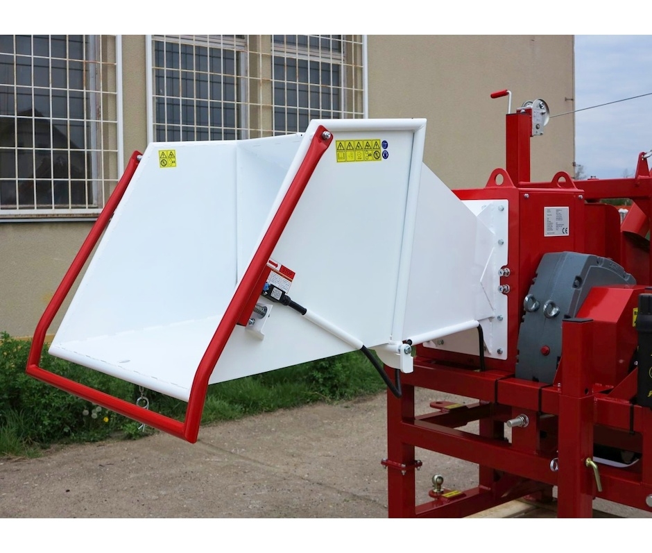 Násypka se skládá z pevné a odklápěcí části. Díky tomu zabírá štěpkovač v přepravní poloze méně místa do šířky - nepřesahuje obrysy traktoru, což je důležité pro jízdu v lese mezi stromy. V pracovní poloze se sklopením odklápěcí části násypka prodlouží. Prodloužená násypka zajišťuje lepší vedení větví a bezpečnost obsluhy. Navíc je násypka osazena bezpečnostním vypínacím rámem s koncovým spínačem, ten je k některým traktorům možné připojit tak, aby při stlačení vypínacího rámu došlo k zastavení motoru nebo vývodové hřídele traktoru. Násypka je orientována vodorovně, což ve srovnání se svislou či šikmou násypkou značně usnadňuje vkládání dlouhých větví. Povrchová úprava celého stroje je provedena práškovými barvami.