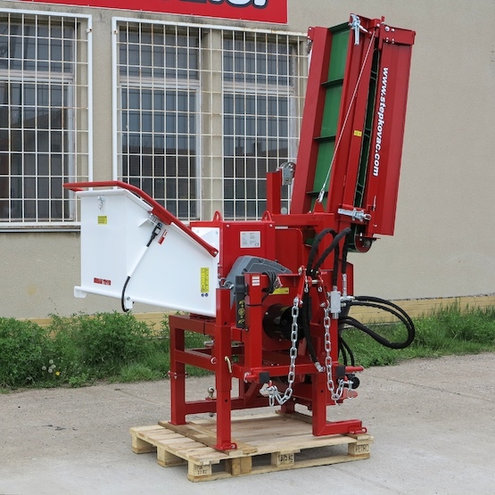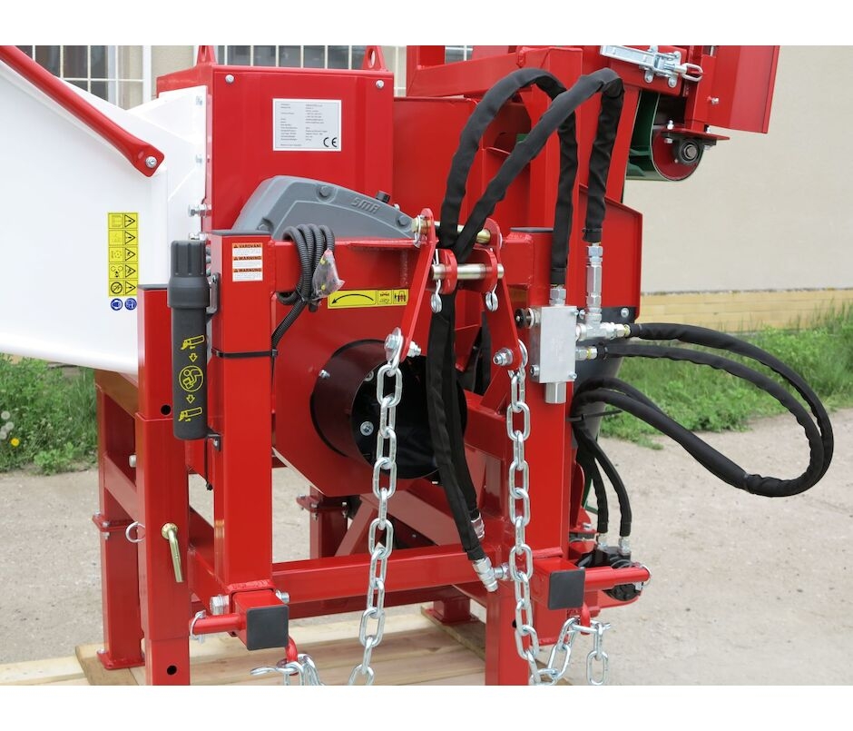 Minimální doporučený výkon traktoru je 50 hp. Optimální výkon traktoru je 70hp a více. Traktor s tímto výkonem může při štěpkování běžet v nízkých otáčkách (cca 1300/min na motoru). Velikost traktoru musí být přiměřená vzhledem k hmotnosti štěpkovače. Vývodová hřídel traktoru je zařazena na otáčky 1000/min. (může být zařazena i na 540/min, ale při nízkých otáčkách hůř funguje podávání větví). Pohon je zajištěn přes kardan s přetěžovací spojkou nastavenou na krouticí moment 1600 Nm. Spojka se při vložení příliš silné větve prosmekne a tím chrání traktor i štěpkovač proti přetížení.
